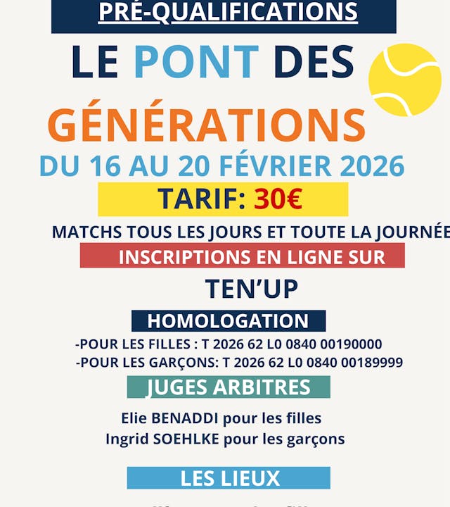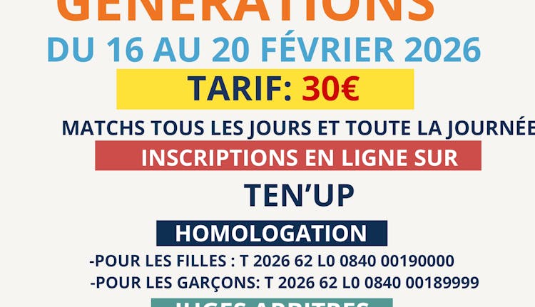 Le Comité de Tennis informe les clubs, joueuses et joueurs de l’organisation d’un tournoi homologué, avec des matchs programmés chaque jour et sur l’ensemble de la journée.